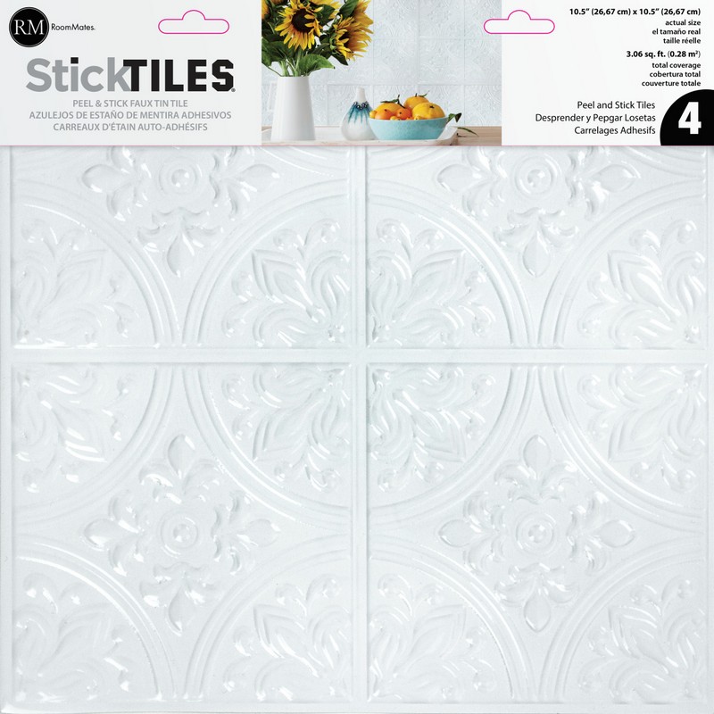BRIGHT WHITE TIN TILE PEEL AND STICK BACKSPLASH