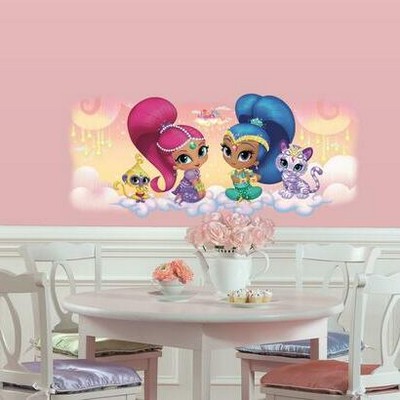 Embark on an enchanted carpet ride with Shimmer and Shine Burst Wall Graphic by RoomMates decor. Featuring Shimmer Shine and their genie pets Tala and Nahal amongst a dreamy Arabian sky this giant wall graphic is a musthave for all fans. Bring the magical moments from the television series straight to your childes room decor in minutes with a simple twostep application process just peel and stick! Watch any room magically transform right before your eyes. Easy to remove and reposition this giant wall graphic is create d with highquality vinyl allowing you to peel and stick as much as needed while keeping walls completely safe. Shop Shimmer and Shine Burst Wall Graphic today!NICKELODEON