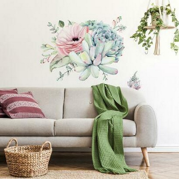 WATERCOLOR FLORAL SUCCULENTS PEEL AND STICK XL GIANT WALL DECALS