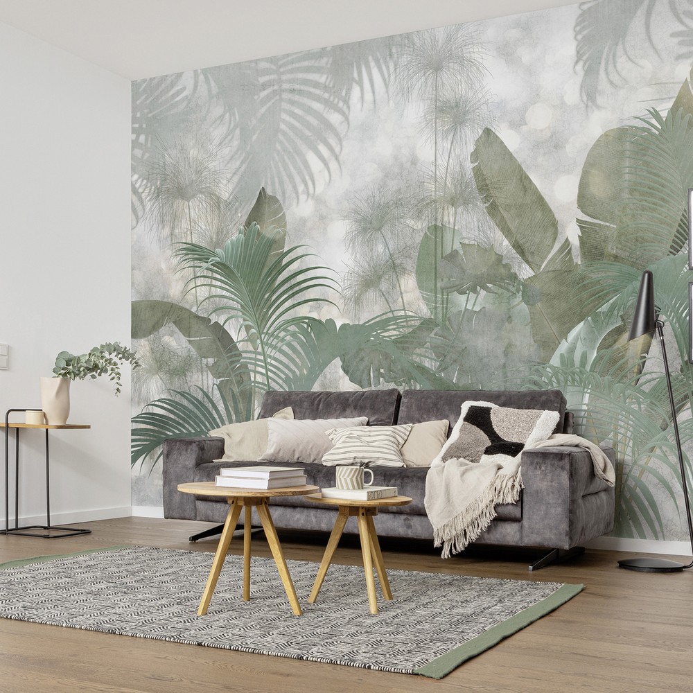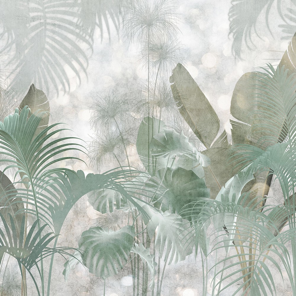 Komar Tropical Brand: Komar Match: NA Sheet Length: 97.6 Sheet Width: 36.25 # of Sheets: 4 An illustrative wall mural featuring an assortment of palm trees in a misty rainforest Printed on non woven material Paste included Comes in 4 panels Measures 12-ft wide by 8-ft 1-in tall when assembled Wall Murals Trees Tropical |