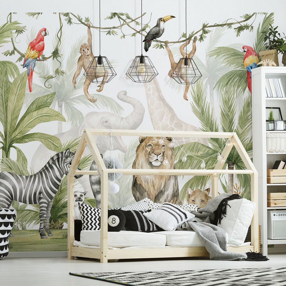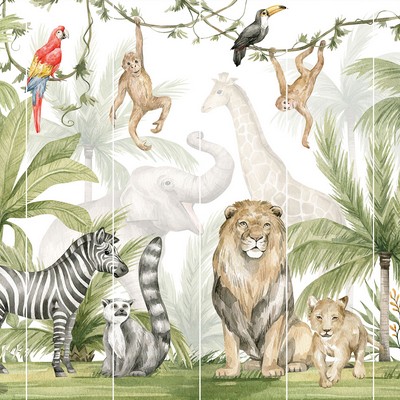 Walltastic Kids Brand: Walltastic Match: NA Sheet Length: 96 Sheet Width: 20 # of Sheets: 6 Illustrative watercolor mural featuring rainforest residents of the jungle Printed on paper material Paste not included Comes in 6 panels Measures 10ft wide by 8ft long when assembled Wall Murals Graphics Kids |