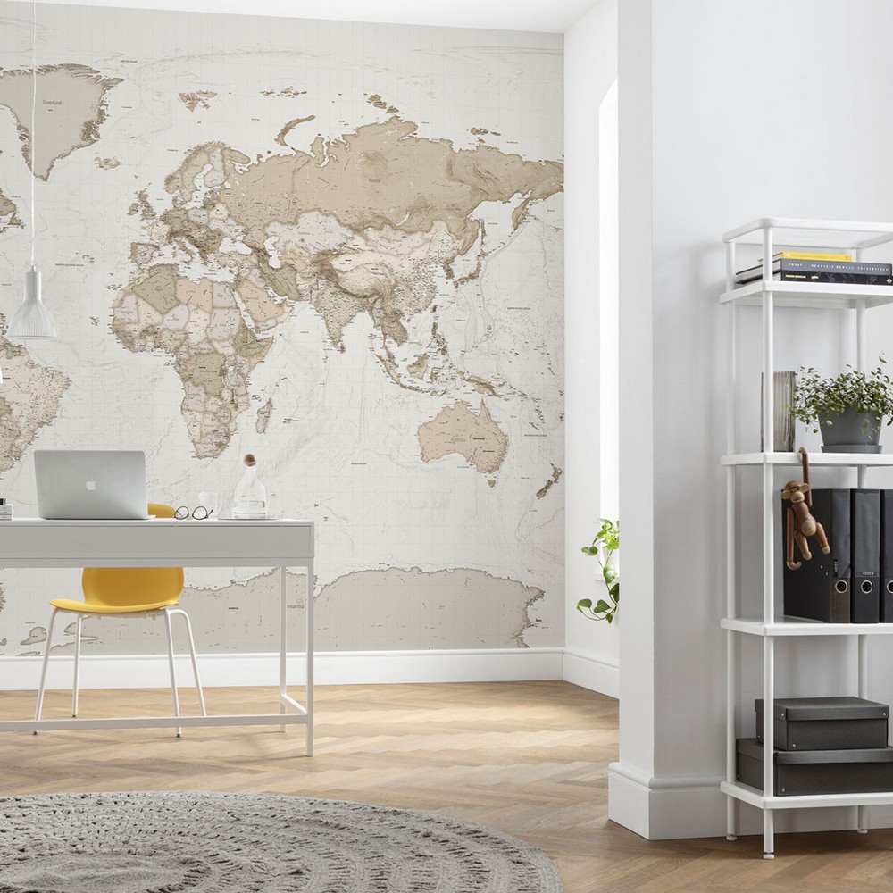Komar Vintage Brand: Komar Match: NA Sheet Length: 98.4 Sheet Width: 19.7 # of Sheets: 7 Historic and vintage map of earth with sepia tones Printed on non woven material Paste not included Comes in 7 panels Measures 11-ft 5-in wide by 8-ft 2-in tall when assembled Wall Murals Novelty Vintage Boys Wallpaper Baby Nursery Wallpaper |