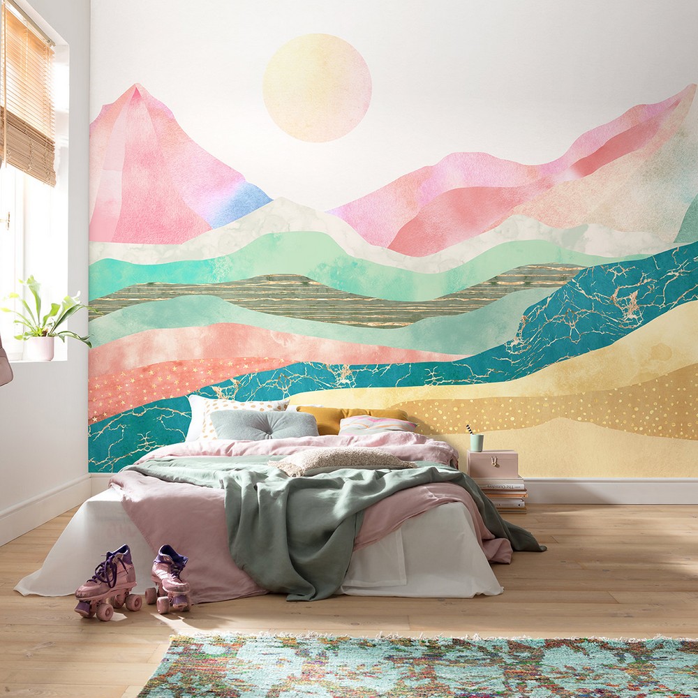 Komar Coastal Brand: Komar Match: NA Sheet Length: 98.4 Sheet Width: 19.7 # of Sheets: 7 Abstract watercolored moutainscape with harmonious pastels Printed on non woven material Paste not included Comes in 7 panels Measures 11-ft 5-in wide by 8-ft 2-in tall when assembled Wall Murals Novelty Coastal |