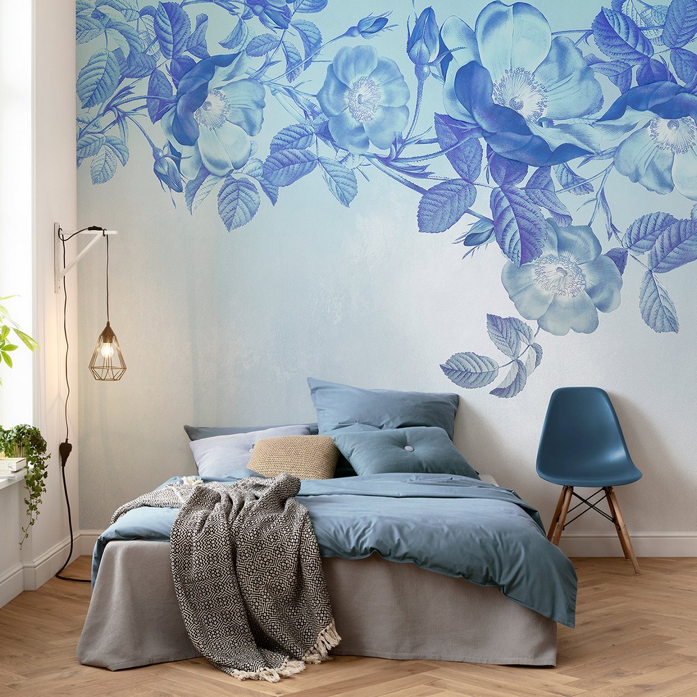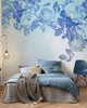 This floral wall mural embellishes the upper portion of your wall with a drooping vine of blue flowers