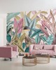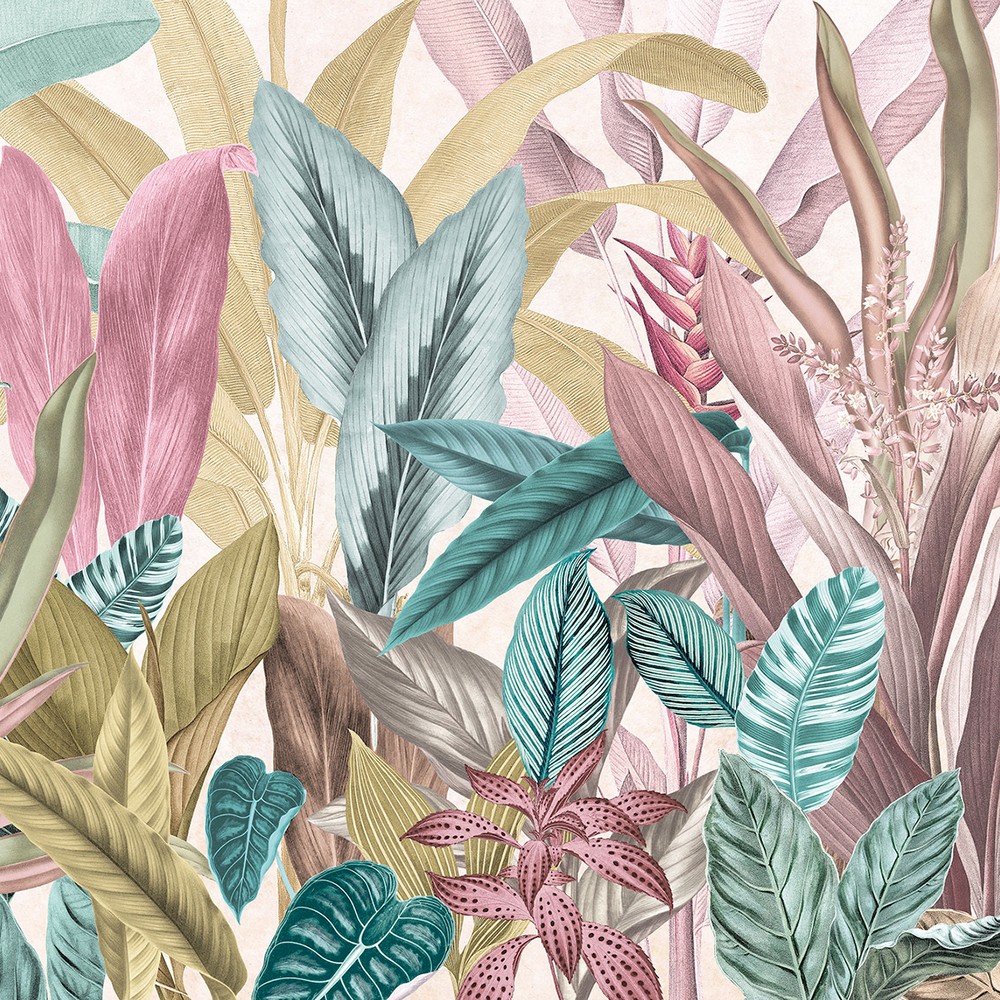 Komar Tropical Brand: Komar Match: NA Sheet Length: 98.4 Sheet Width: 19.7 # of Sheets: 7 Lively and luscious tropical wall mural featuring a medley of rainforest flora in shades of teal, pink and gold Printed on non woven material Paste not included Comes in 7 panels Measures 11-ft 5-in wide by 8-ft 2-in tall when assembled Wall Murals Leaves Tropical |