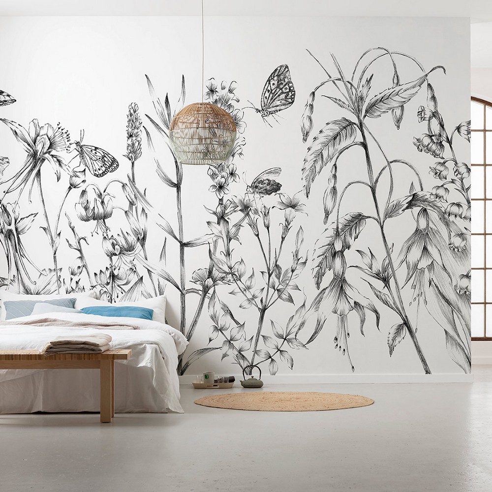 Komar Bohemian Brand: Komar Match: NA Sheet Length: 98.4 Sheet Width: 19.7 # of Sheets: 8 Wildflowers are visited by butterflies in this hip, black and white illustrative mural Printed on non woven material Paste not included Comes in 8 panels Measures 13-ft 1-in wide by 8-ft 2-in tall when assembled Wall Murals Butterflies Bohemian Animal Murals |