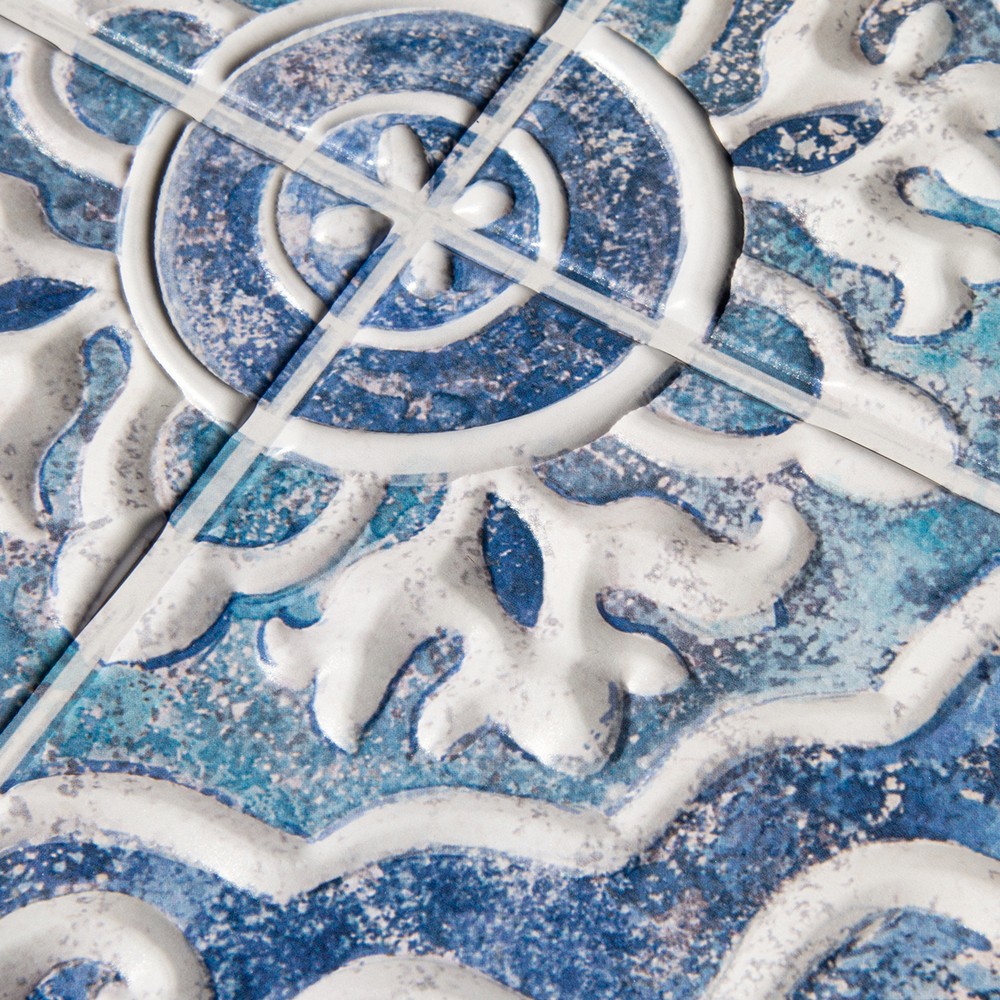 Brewster Wallcovering Ada Blue Embossed Peel Stick Backsplash Tiles WPBS4645