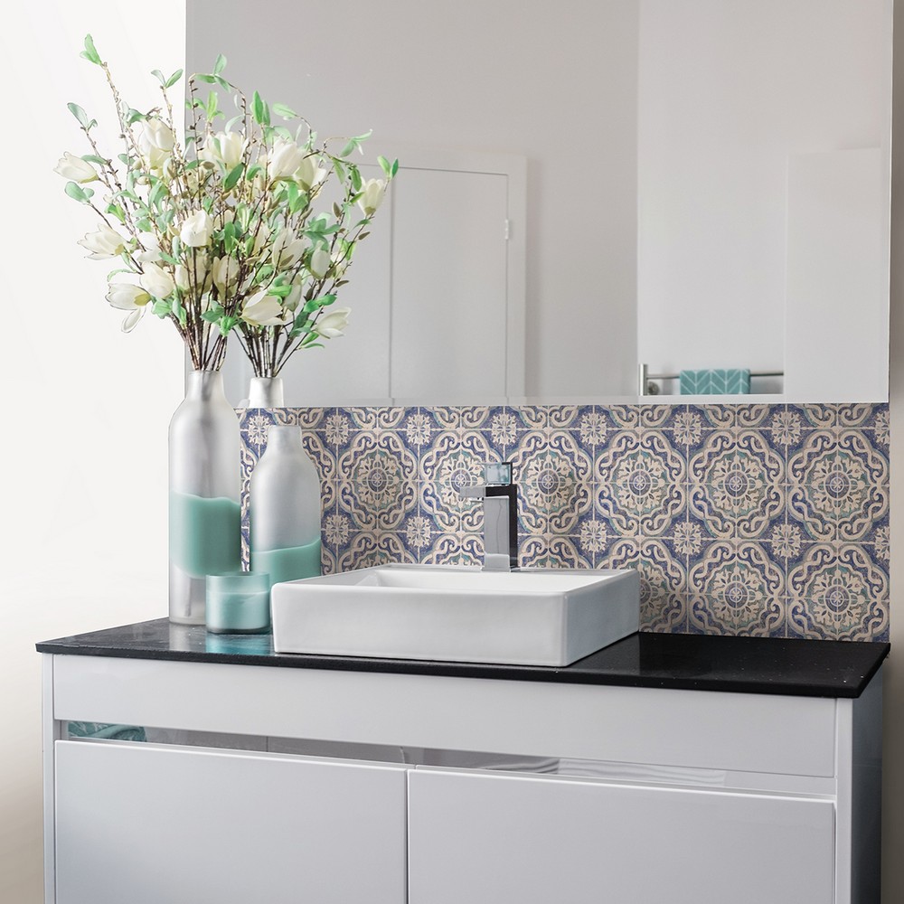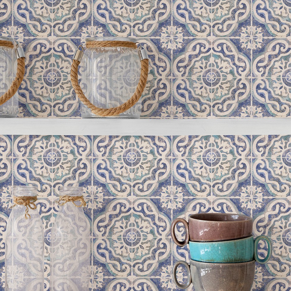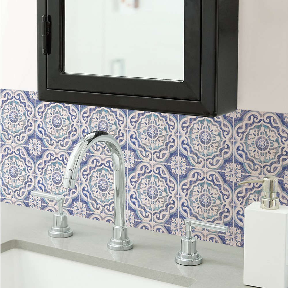 WallPops Traditional Brand: WallPops Match: NA Sheet Length: 10 Sheet Width: 10 # of Sheets: 4 Blue and off-white Moroccan-inspired backsplash design on embossed tiles made easy to apply with adhesive strips Embossed adhesive strip tile panels with a high shine finish Perfect for creating a backsplash A stove without a backing needs 15 in (38 cm) of room or more above range to avoid exposure of product to heat Each pack contains 4 tiles. Individual tiles measure 3-in by 6.5-in Comes with four 10-in by 10-in panels Covers about 1.8 square feet Wipe clean with a damp cloth Peel & Stick Tiles Tiles Traditional Kitchen And Bathroom Wallpaper Borders |