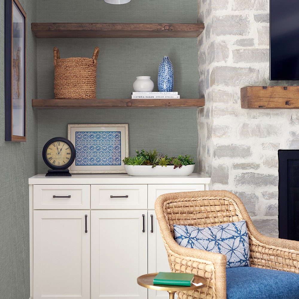 Chesapeake Match: Straight Roll Width in Inches: 20.5 Roll Length in Feet: 33 Unpasted Abstract Strippable Color Family: Greys Faux Grasscloth Abstract Solid Texture Wallpaper |
