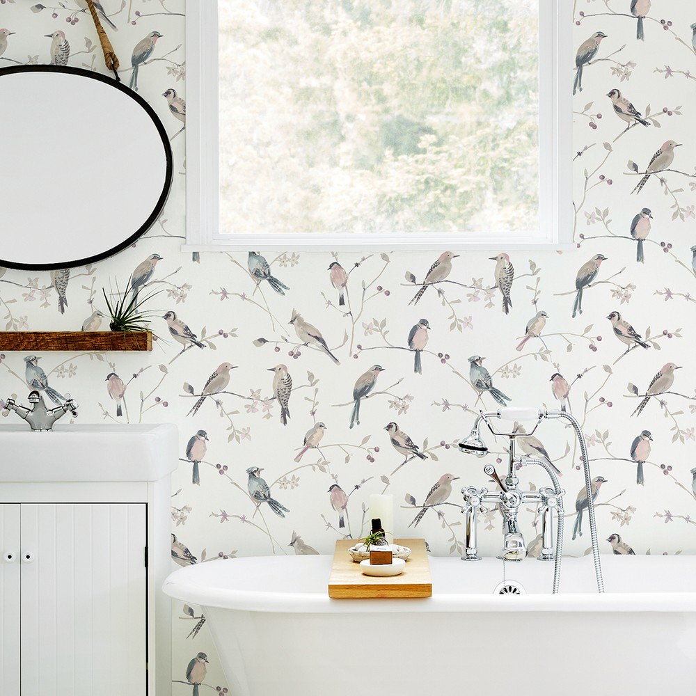 Chesapeake Match: Half Drop Roll Width in Inches: 20.5 Roll Length in Feet: 33 Prepasted Animals Wet Strippable Color Family: Pinks Birds Animals |