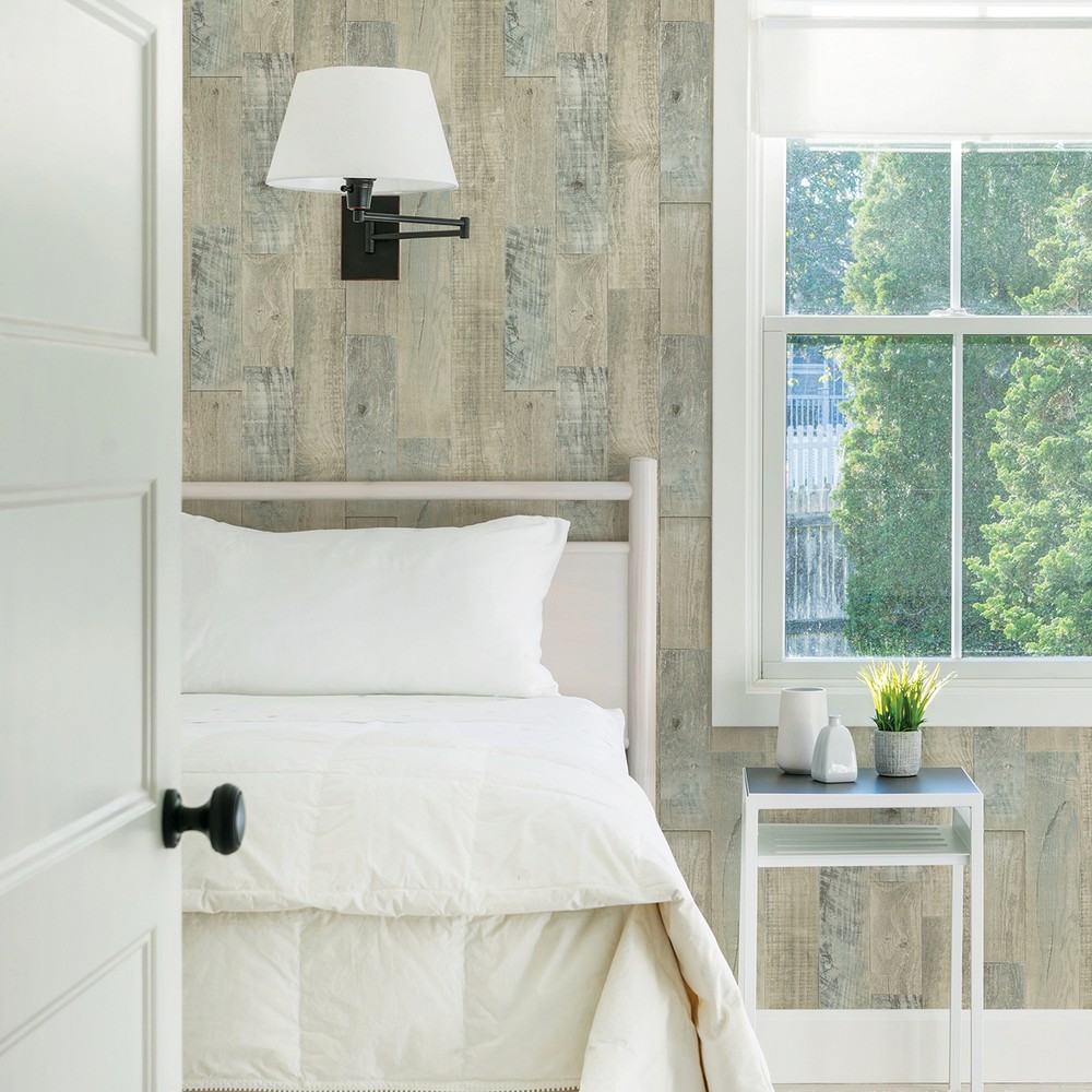 Brewster Wallcovering Chebacco Taupe Wood Planks Wallpaper 3124-12692