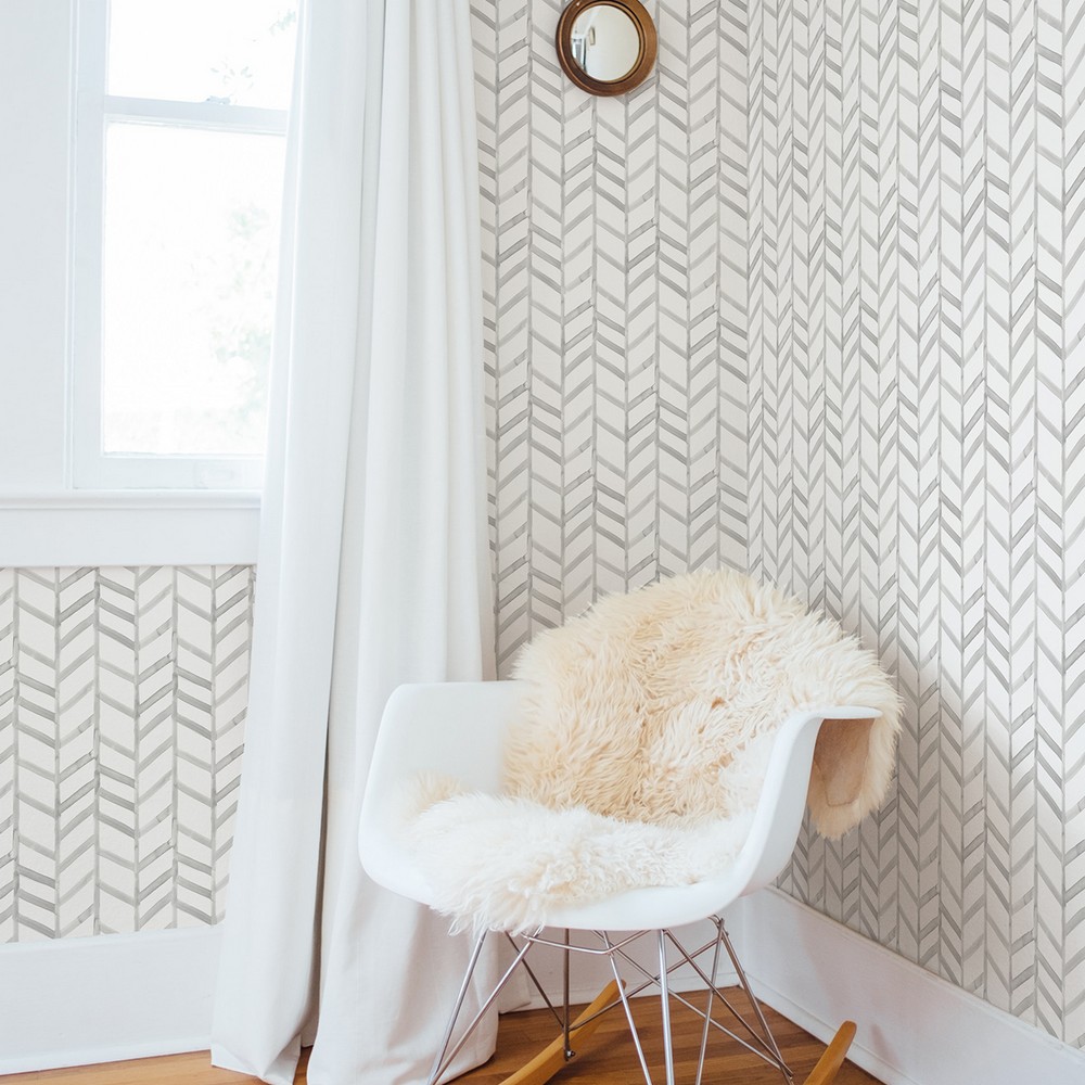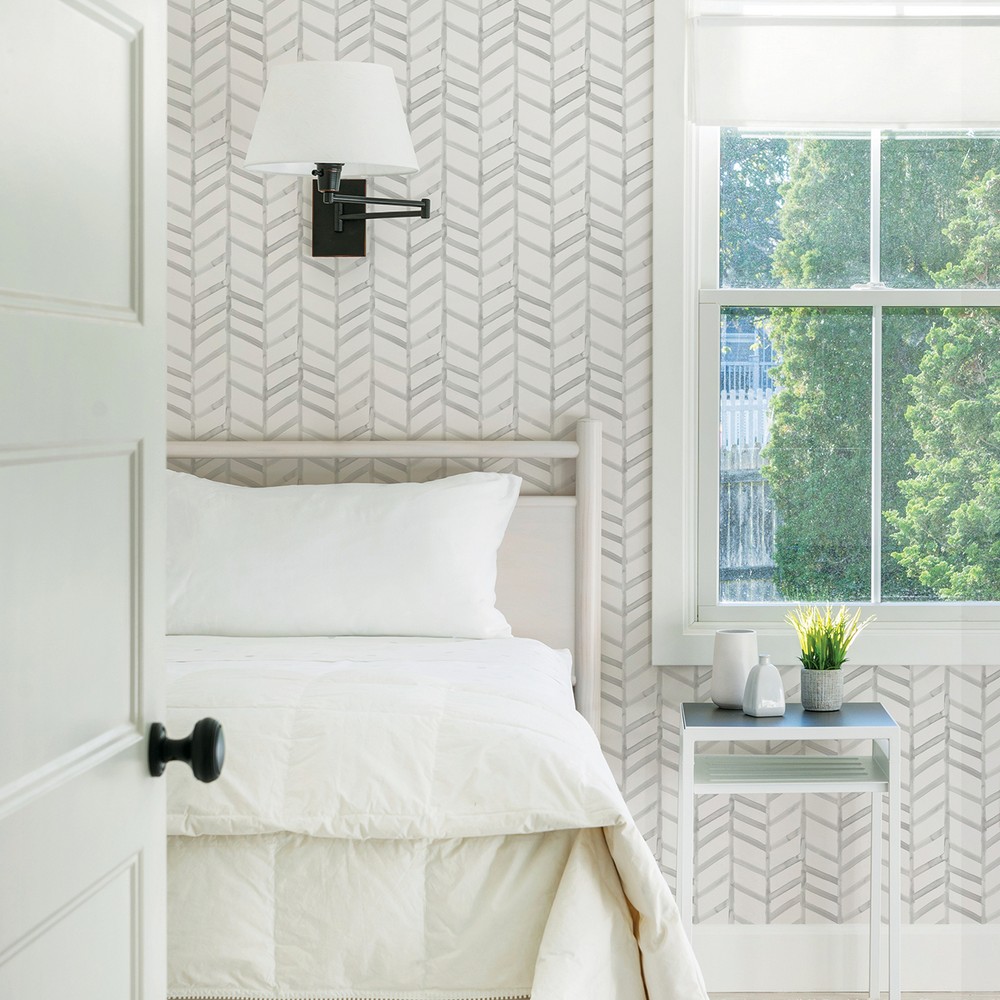 Chesapeake Match: Straight Roll Width in Inches: 20.5 Roll Length in Feet: 33 Prepasted Abstract Wet Strippable Color Family: Greys Geometrics Abstract Chevron Zig Zag And Herringbone |