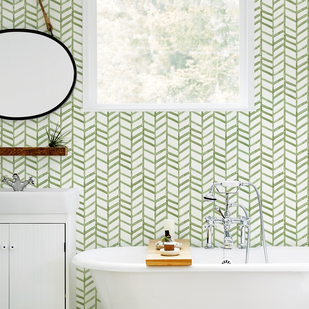Chesapeake Match: Straight Roll Width in Inches: 20.5 Roll Length in Feet: 33 Prepasted Abstract Wet Strippable Color Family: Greens Geometrics Abstract Chevron Zig Zag And Herringbone |