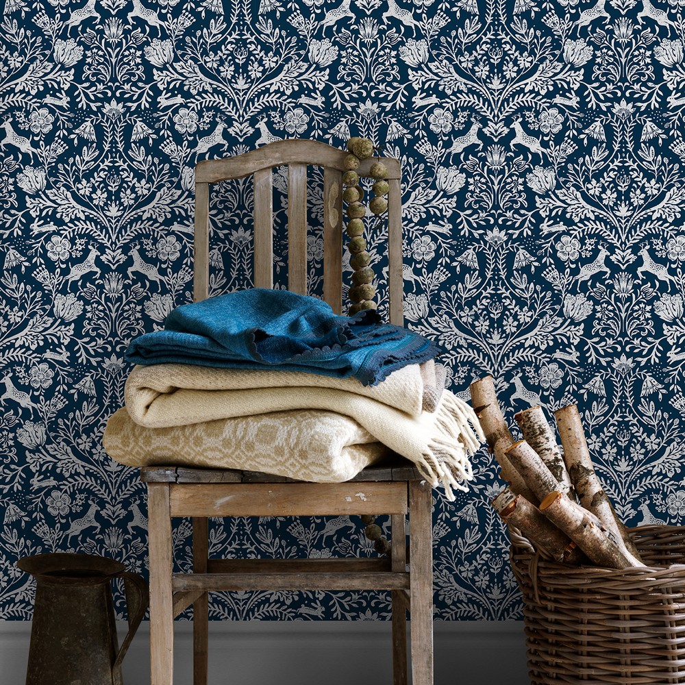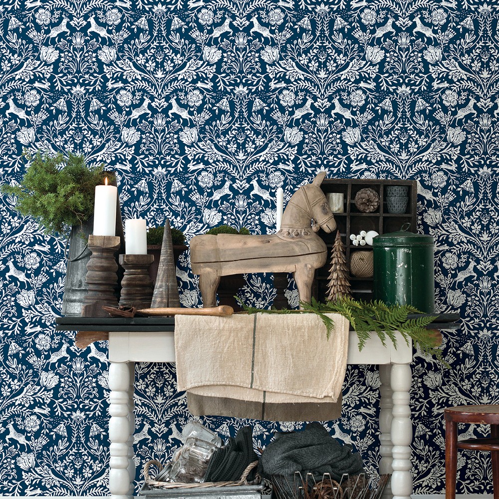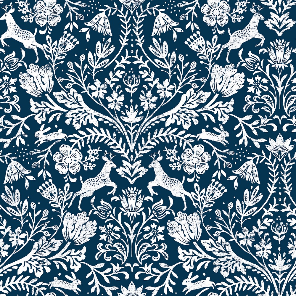 Chesapeake Match: Straight Roll Width in Inches: 20.5 Roll Length in Feet: 33 Prepasted Animals Wet Strippable Color Family: Blues Damask Animals |