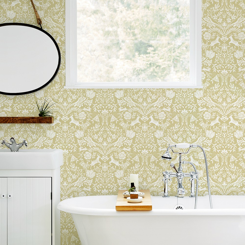 Chesapeake Match: Straight Roll Width in Inches: 20.5 Roll Length in Feet: 33 Prepasted Animals Wet Strippable Color Family: Yellows Damask Animals |
