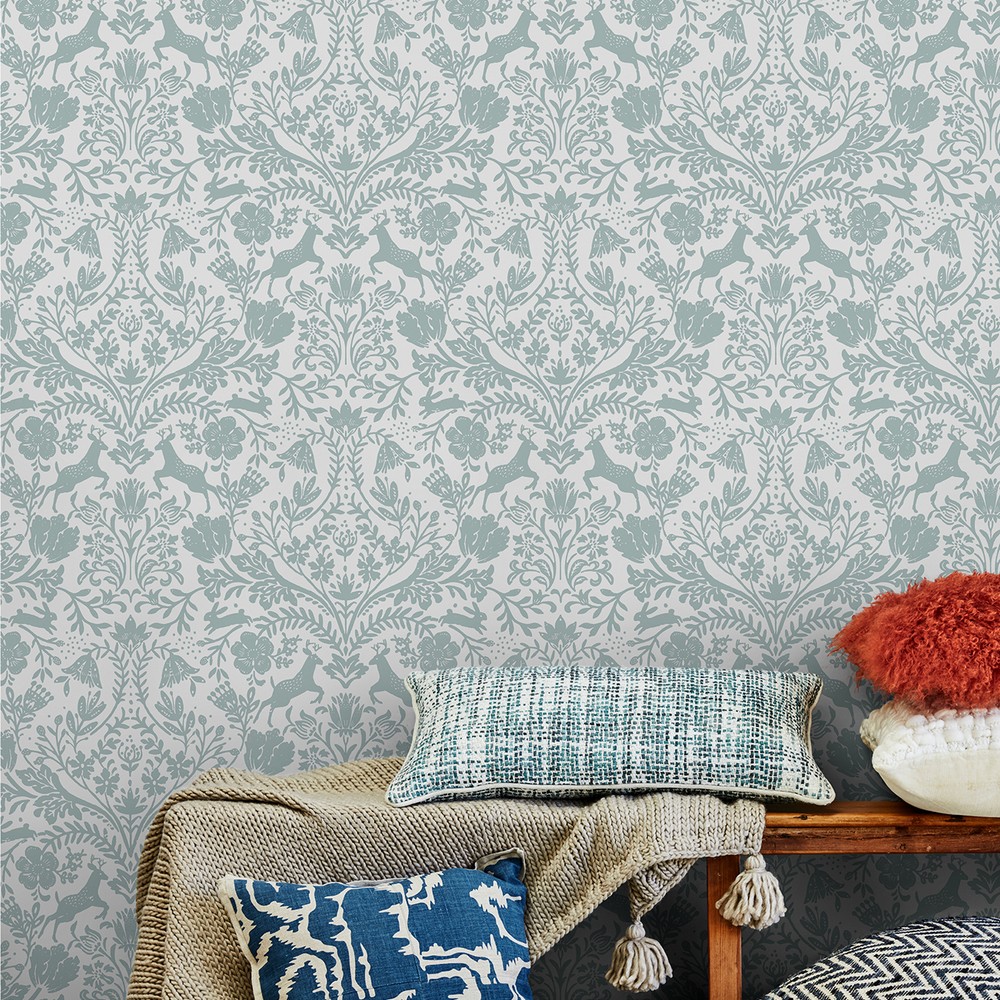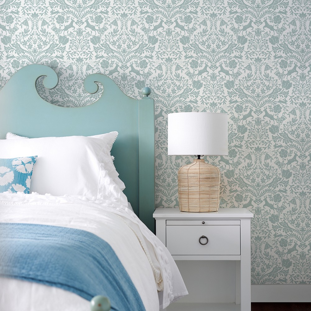 Chesapeake Match: Straight Roll Width in Inches: 20.5 Roll Length in Feet: 33 Prepasted Animals Wet Strippable Color Family: Blues Damask Animals |