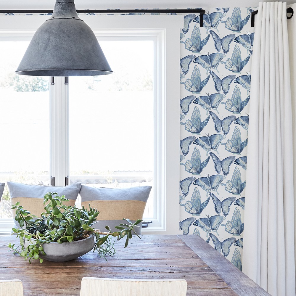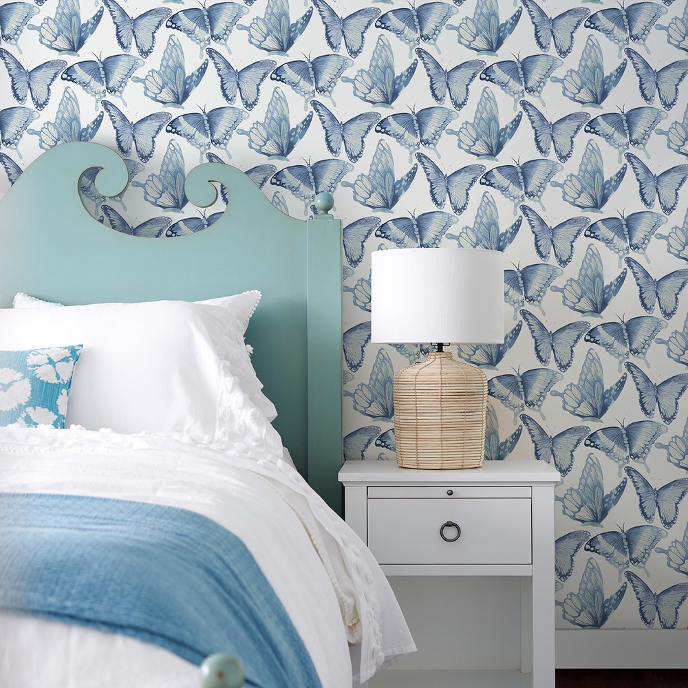 Brewster Wallcovering Janetta Blue Butterfly Wallpaper 3124-13932