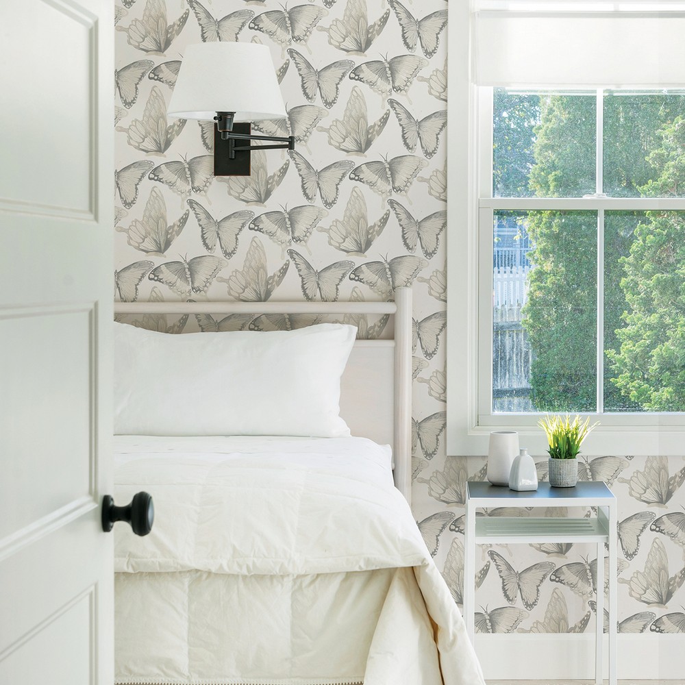 Brewster Wallcovering Janetta Grey Butterfly Wallpaper 3124-13931