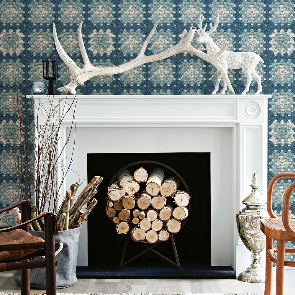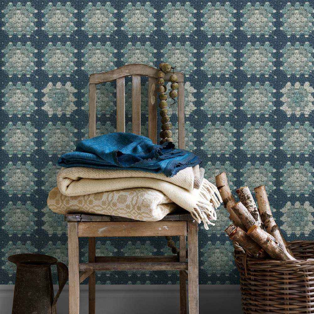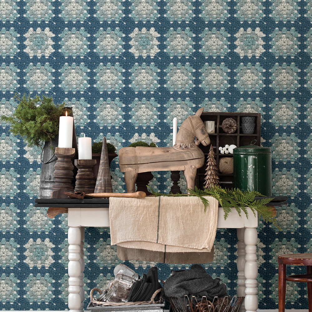 Brewster Wallcovering Maud Blue Crochet Geometric Wallpaper 3124-13864