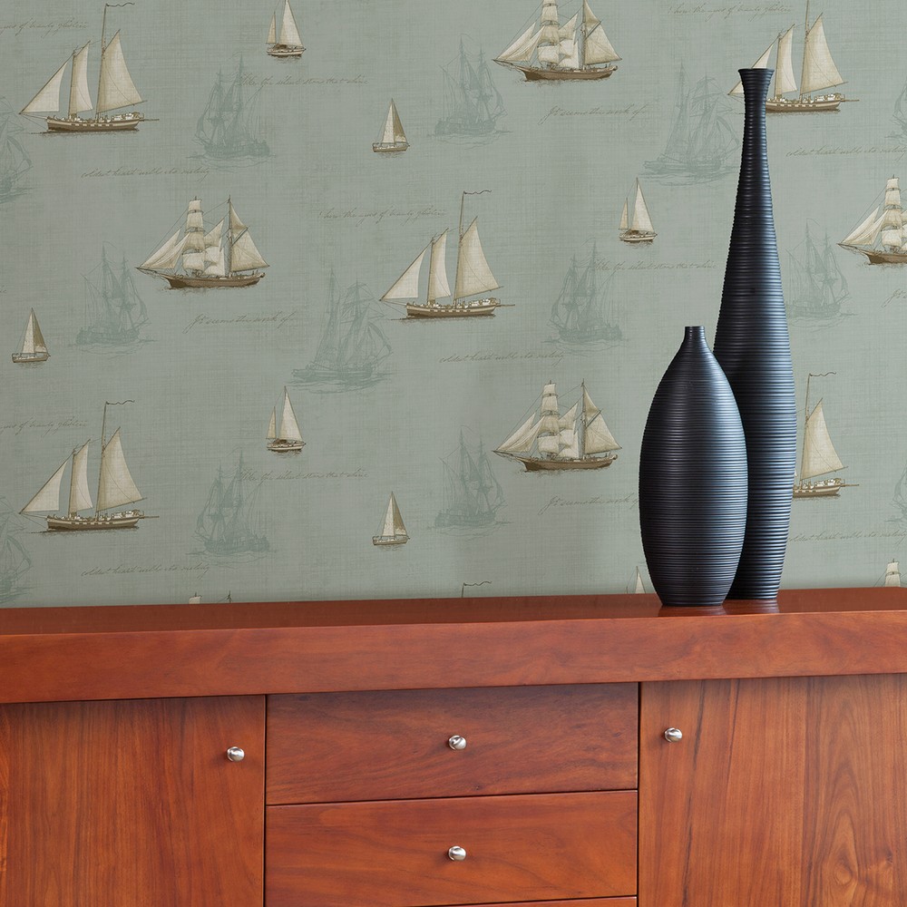 Brewster Wallcovering Andrew Seafoam Sailboat Wallpaper Seafoam