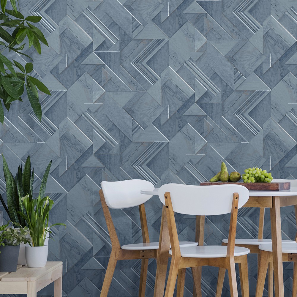 Brewster Wallcovering Cassian Denim Wood Geometric Wallpaper 4041-35301