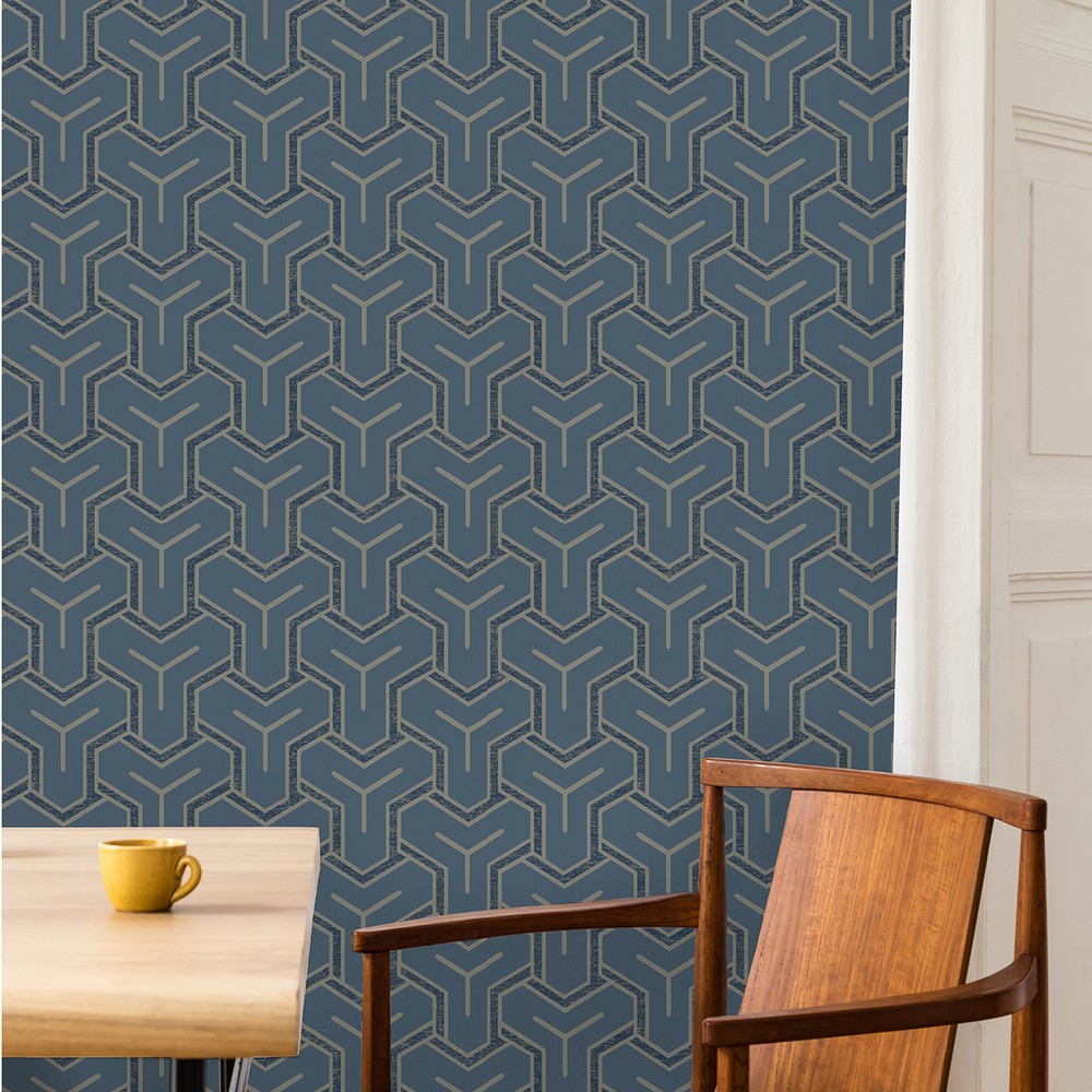 Brewster Wallcovering Gautier Blue Tessellate Wallpaper 4041-26201