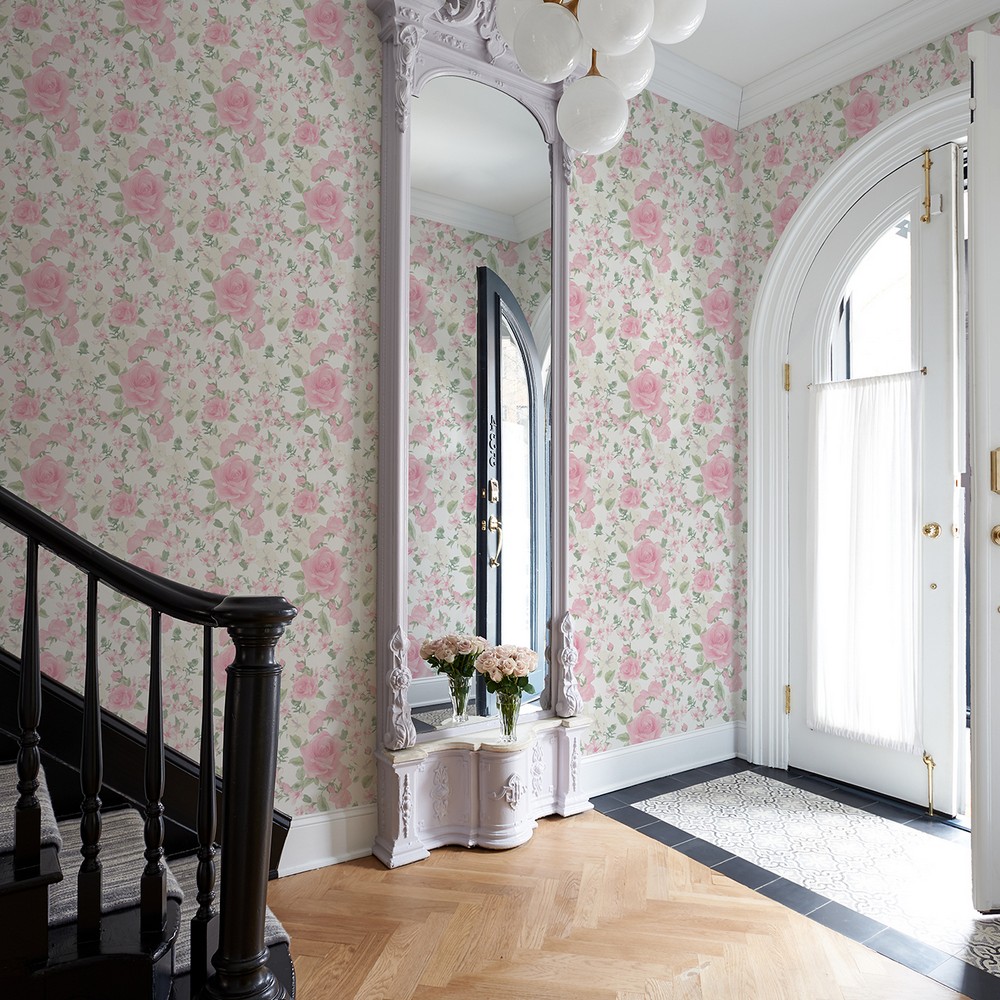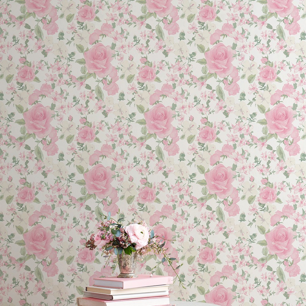 Brewster Wallcovering Sunset Harbor Rose Vida Rosa Roses White Flowers Wallpaper AST4655