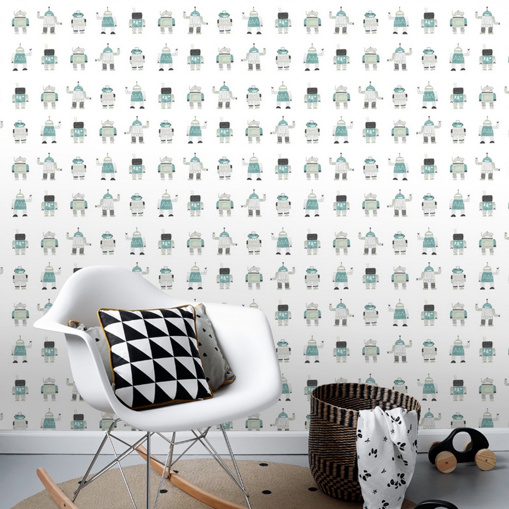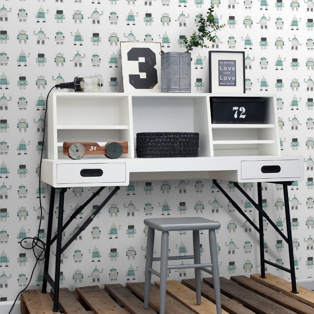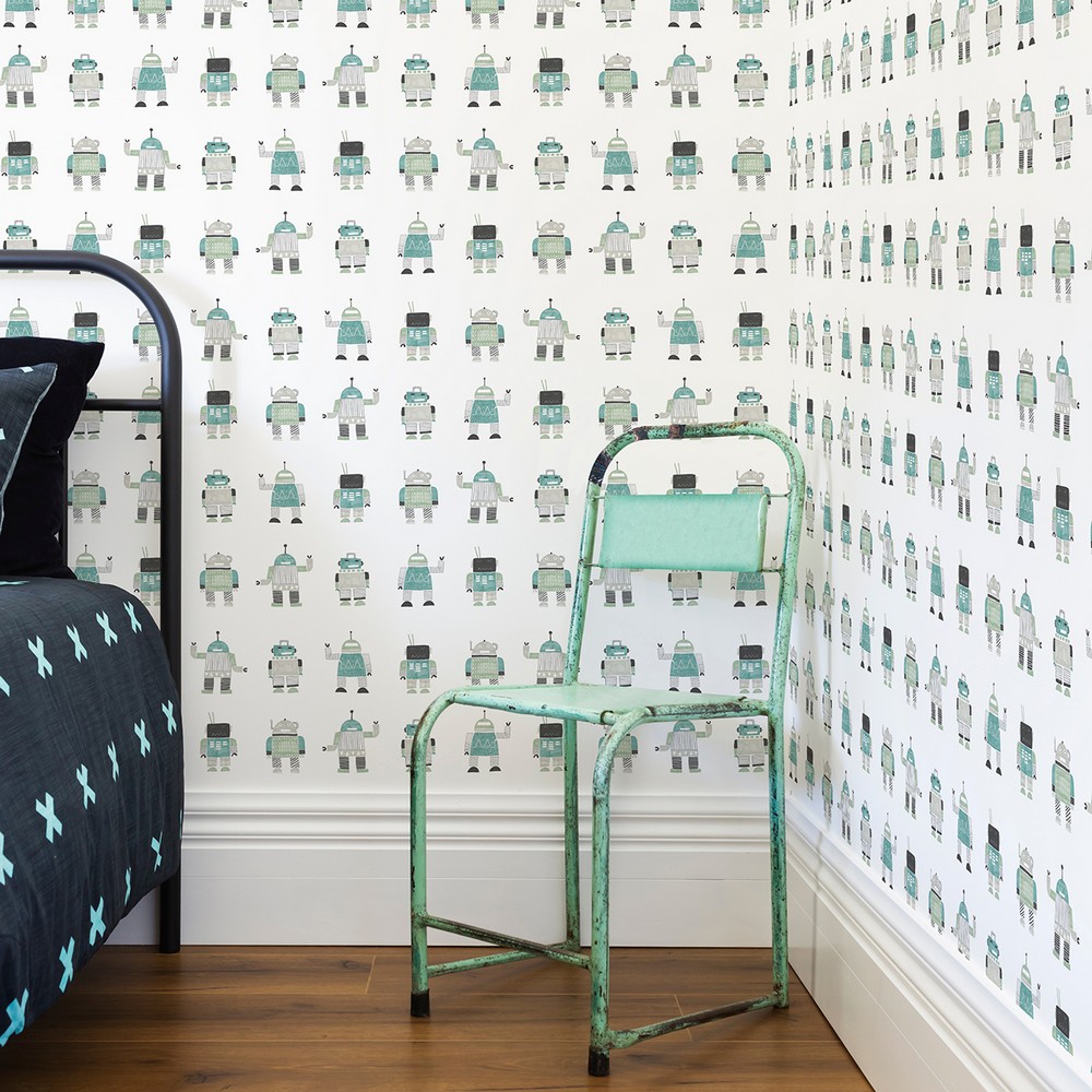 Brewster Wallcovering Callum Teal Robots Wallpaper 4060-138938