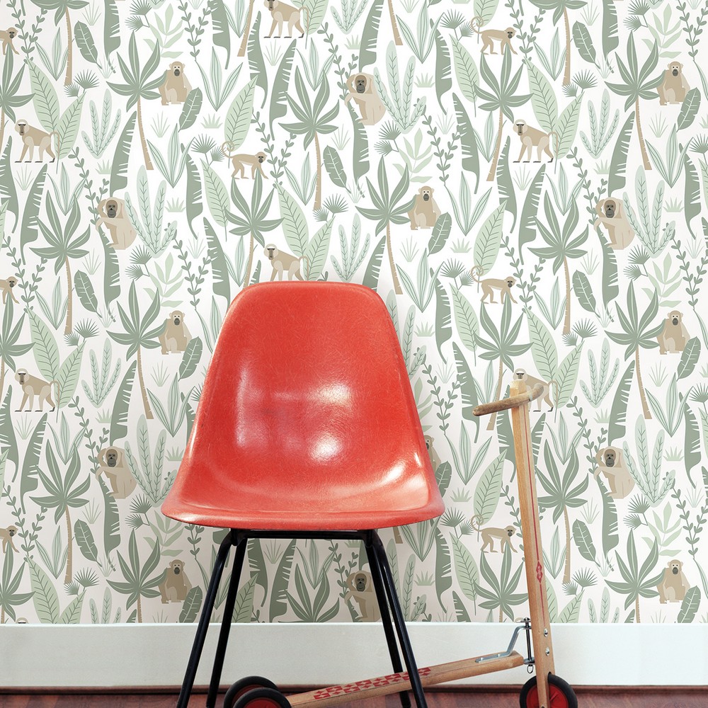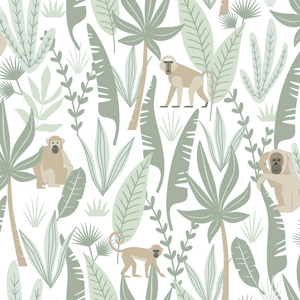 Brewster Wallcovering Kiki Light Green Monkeys Wallpaper 4060-139071