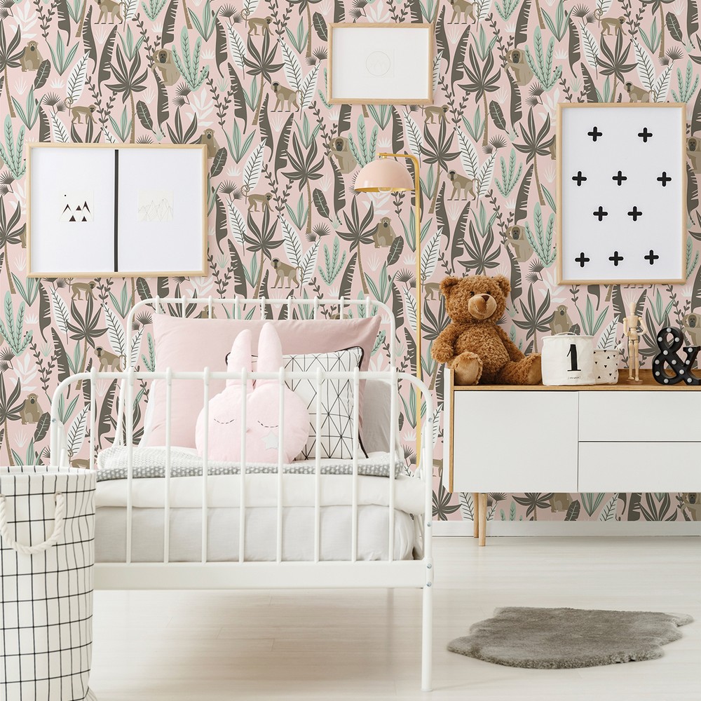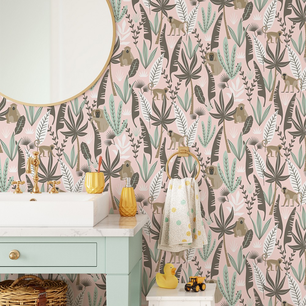 Brewster Wallcovering Kiki Pink Monkeys Wallpaper 4060-139072