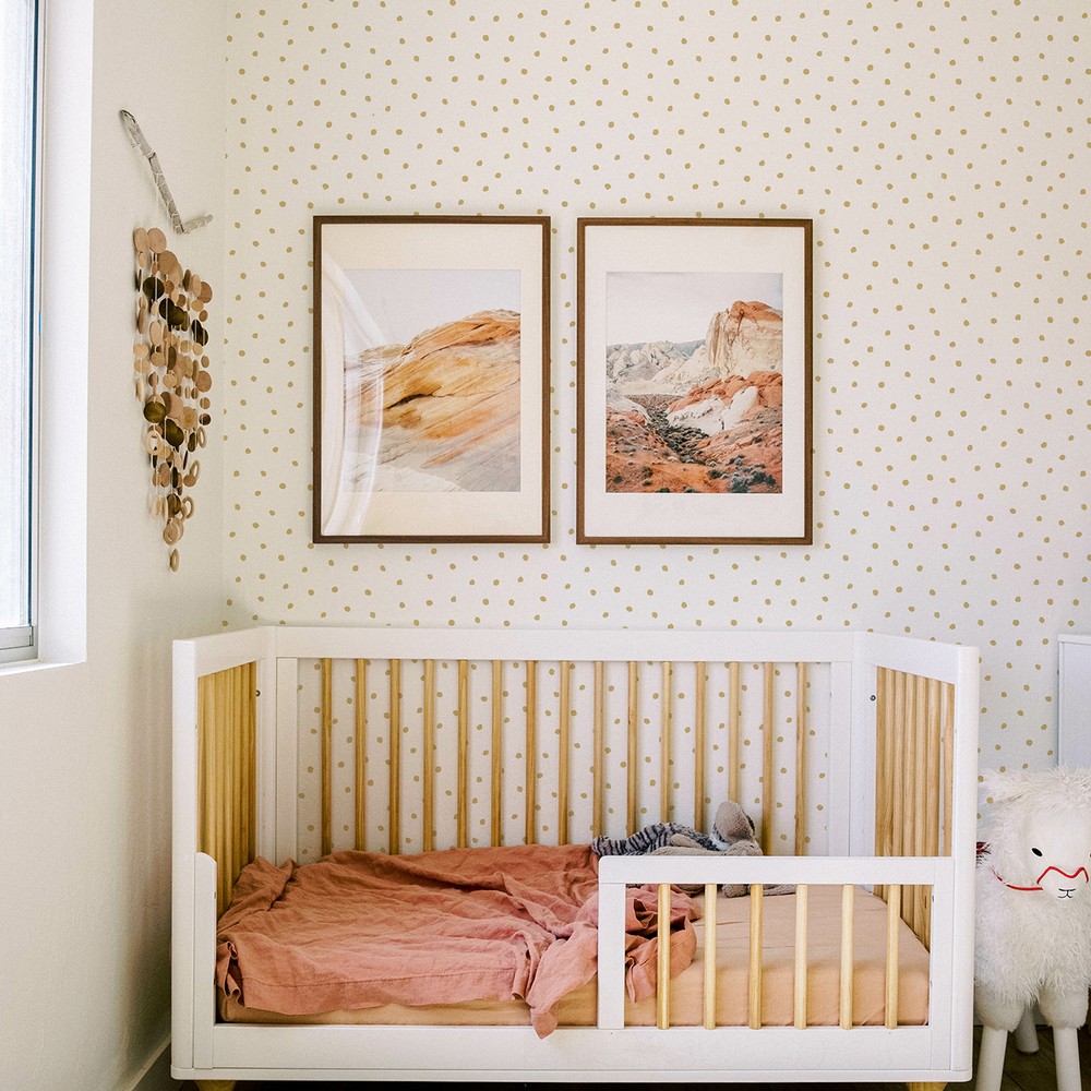 Chesapeake Match: Straight Roll Width in Inches: 20.9 Roll Length in Feet: 33 Unpasted Abstract Strippable Color Family: Metallics Polka Dots Abstract Girls Wallpaper Baby Nursery Wallpaper |