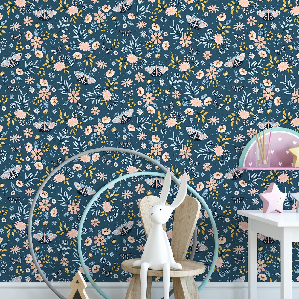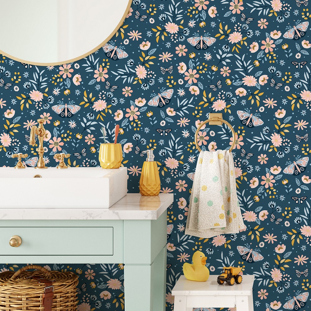 Chesapeake Match: Drop Roll Width in Inches: 20.9 Roll Length in Feet: 33 Unpasted Animals Strippable Color Family: Blues Butterflies Animals Girls Wallpaper Flower Wallpaper |