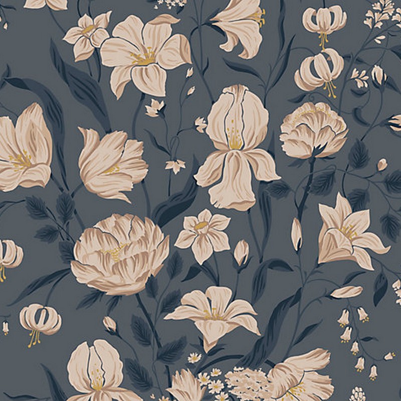 | LARGE Scale DARK GREY / CHARCOAL|PALE PINK / BLUSH Sandberg Flower Wallpaper |