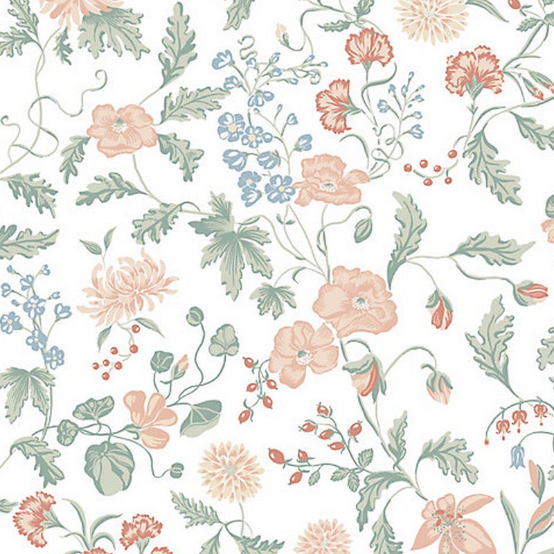 | MEDIUM Scale MULTICOLOR|PEACH / APRICOT|SAGE / PALE GREEN / CELADON Sandberg Flower Wallpaper |