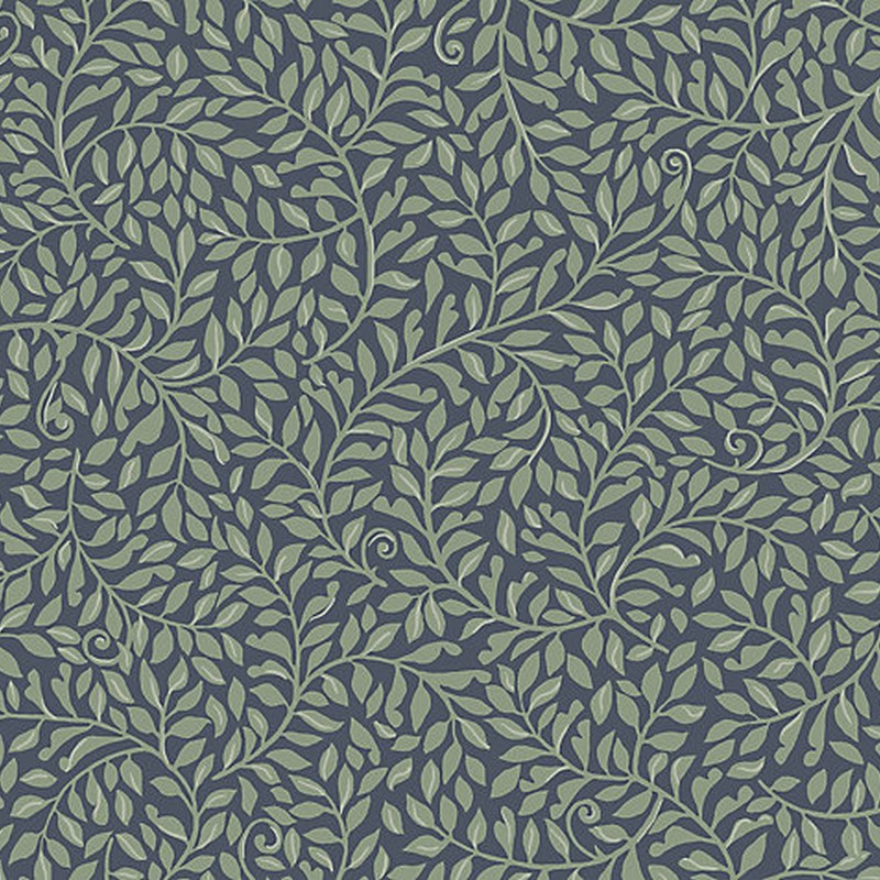 | SMALL Scale DEEP BLUE / NAVY / INDIGO|SAGE / PALE GREEN / CELADON Sandberg Leaves Trees And Vines Wallpaper |
