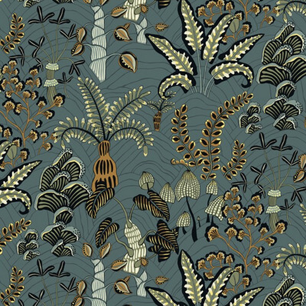 | Kravet Wallcoverings Josephine Munsey Portfolio I Botanical & Floral Print Pretrimmed blue And Bronze Wallpaper Priced and sold by the roll of 11 Yards Up the bolt Leaves Trees And Vines Wallpaper |