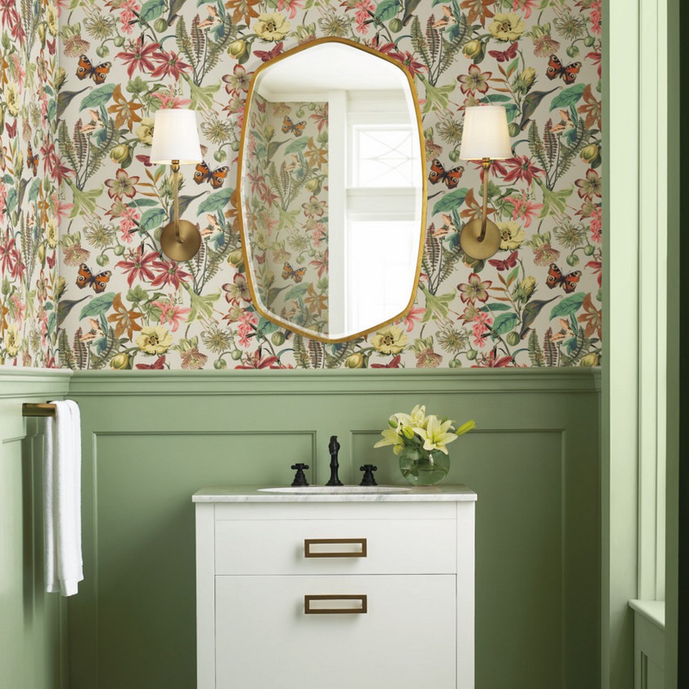 | Roll is 27 Feet in Length With About 60.8 square feet Unpasted Strippable Washable Repeat: 24 Match: Straight A garden of exotic blooms, visited by drifting butterflies in patterns, is featured in this design. The colors are green and coral on a taupe background. This Butterfly House Wallpaper measures approximately 27 inches wide by 27 feet long, measuring approximately 60.8 square feet per roll. Blooms Second Edition F01 Colors: Greens Bird And Butterfly Wallpapers |