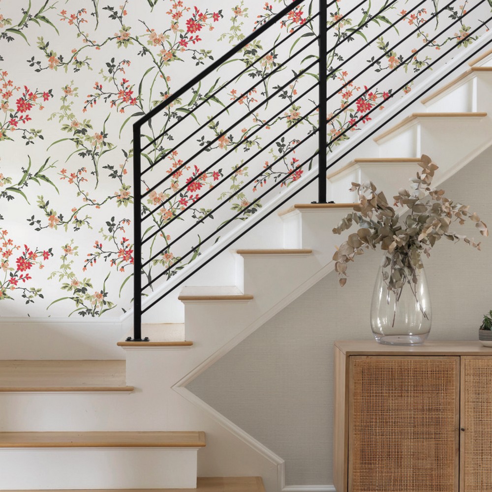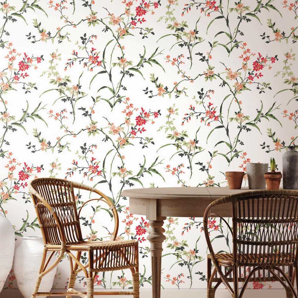York Wallcovering White and Red Blossom Branches Wallpaper