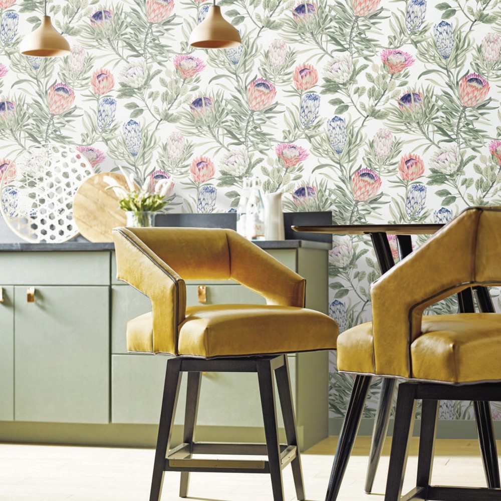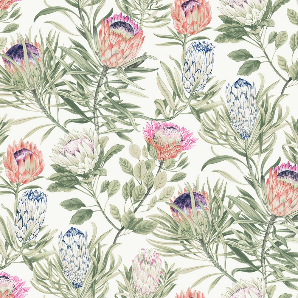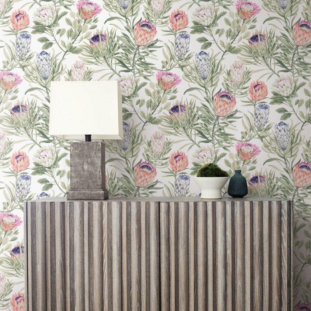 York Wallcovering White and Fuchsia Protea Wallpaper