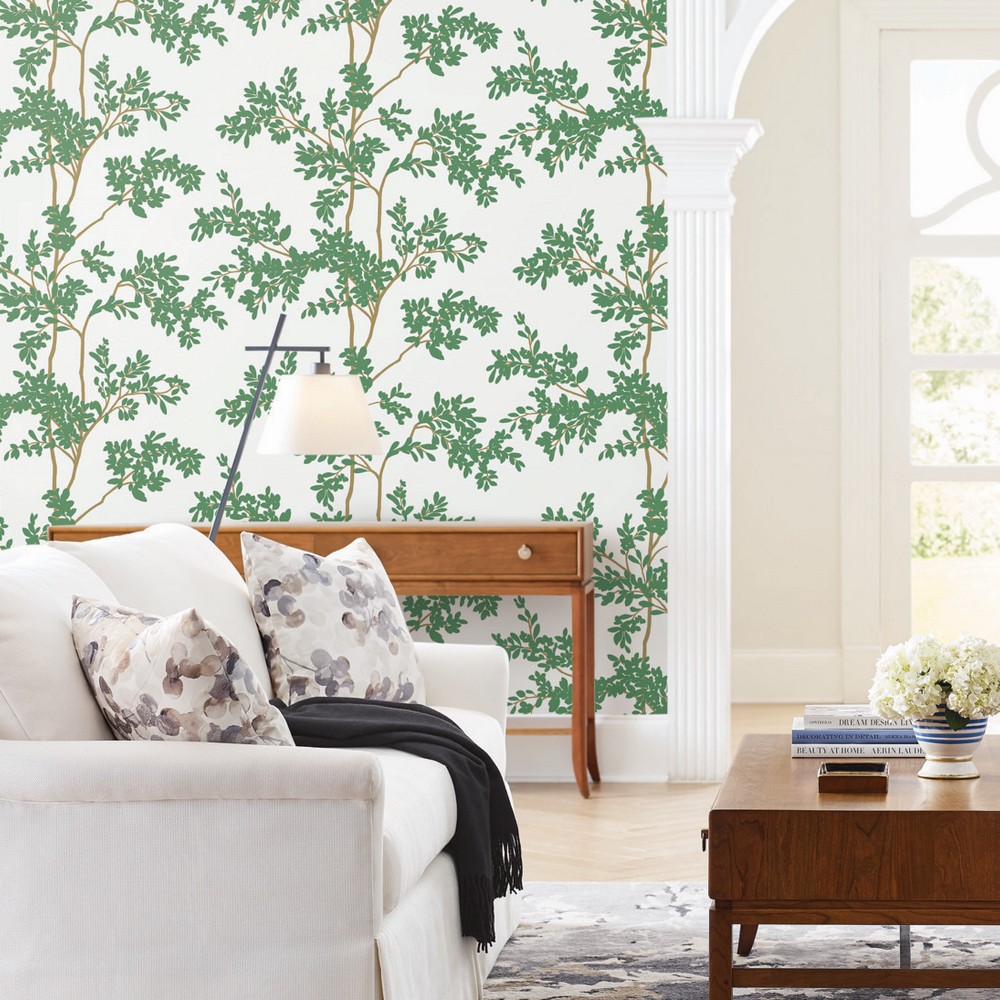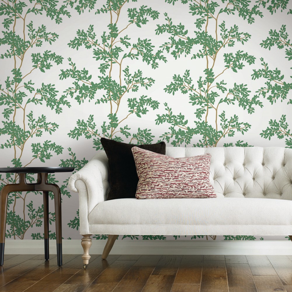 York Wallcovering White and Green Lunaria Silhouette Wallpaper