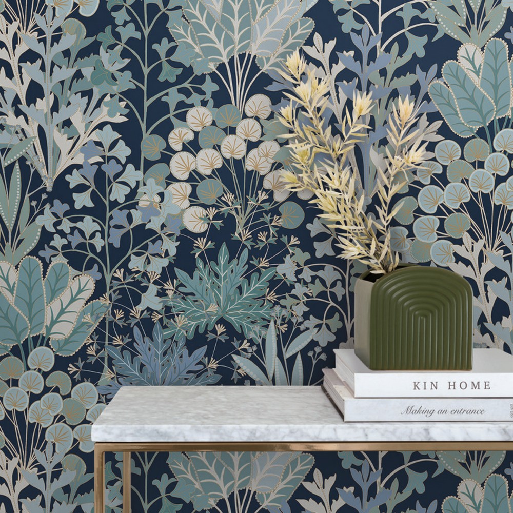 York Wallcovering Navy Forest Floor Wallpaper