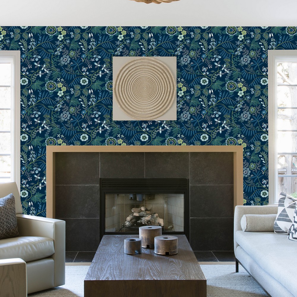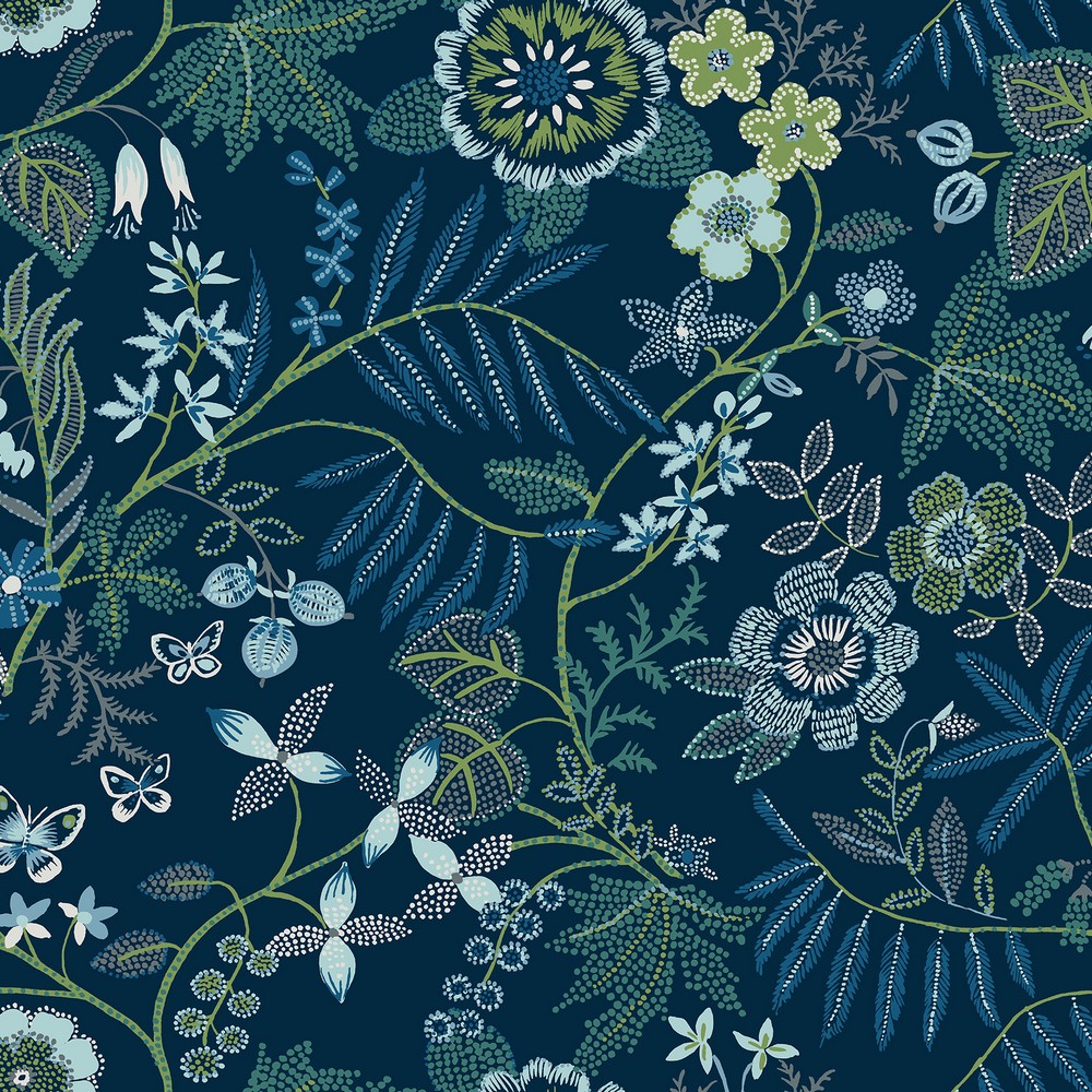 Brewster Wallcovering Marilyn Dark Blue Floral Trail 4034-72135