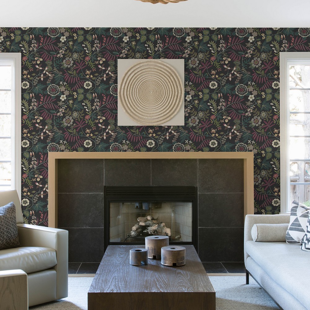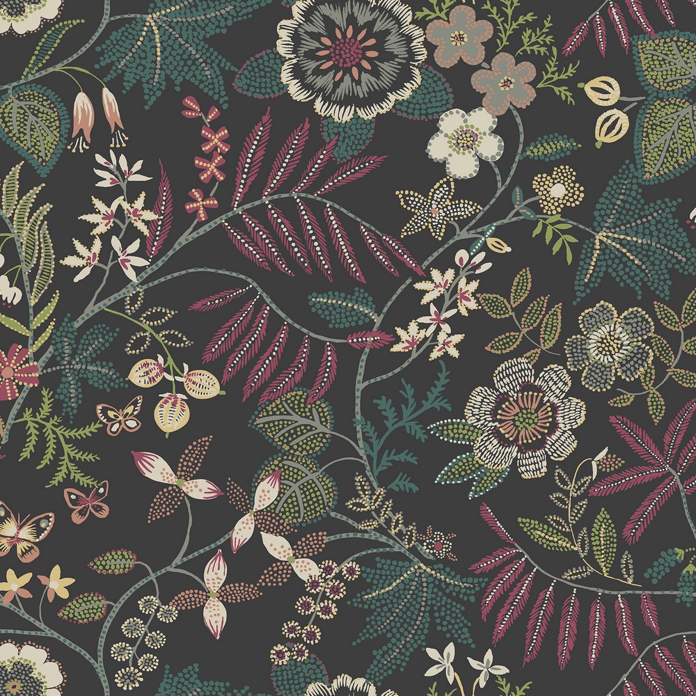 Brewster Wallcovering Marilyn Black Floral Trail 4034-72138