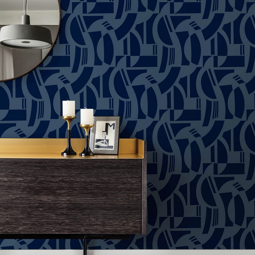 | current and luxurious, this geometric wallpaper will take your interiors to the next level! A variety of shapes are formed from velvety, midnight blue flock offset against a lighter blue backdrop with a subtle, pearlescent luster. Carter is an unpasted, non woven wallpaper measuring 20.5 inches wide by 33 feet long, covering approxiamately About 56.4 square feet square feet per roll A-Street Prints Page: 32 Match: Straight Double Double Roll Width (in): 20.5 Double Double Roll Length in Feet: 33 Unpasted Graphics Color Family: Blues Geometrics Graphics |