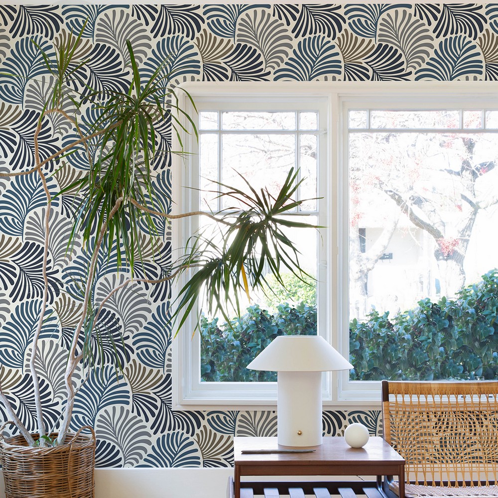 Brewster Wallcovering Trousdale Dark Blue Fanning Flora 4034-72124