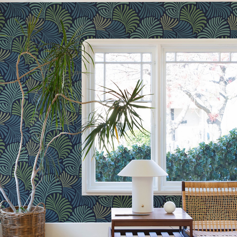 Brewster Wallcovering Trousdale Navy Fanning Flora 4034-72125