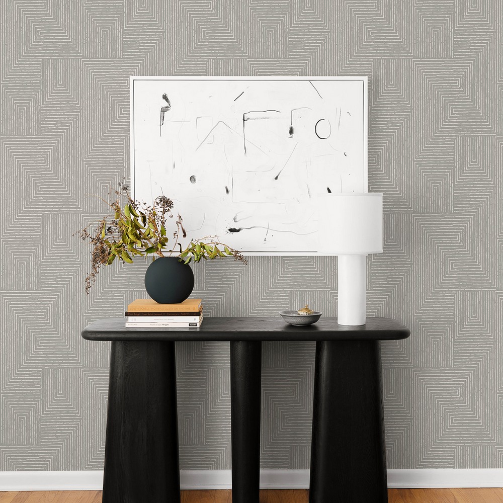 | Soft and compelling, this geometric wallpaper brings organic dimension to your interiors. The maze-like design is painted in white along a cool grey cork background. Mortenson is an unpasted, cork wallpaper measuring 27 inches wide by 27 feet long, covering approxiamately About 60.8 square feet square feet per roll A-Street Prints Page: 47 Match: Straight Double Double Roll Width (in): 27 Double Double Roll Length in Feet: 27 Unpasted Graphics Color Family: Greys Geometrics Graphics |