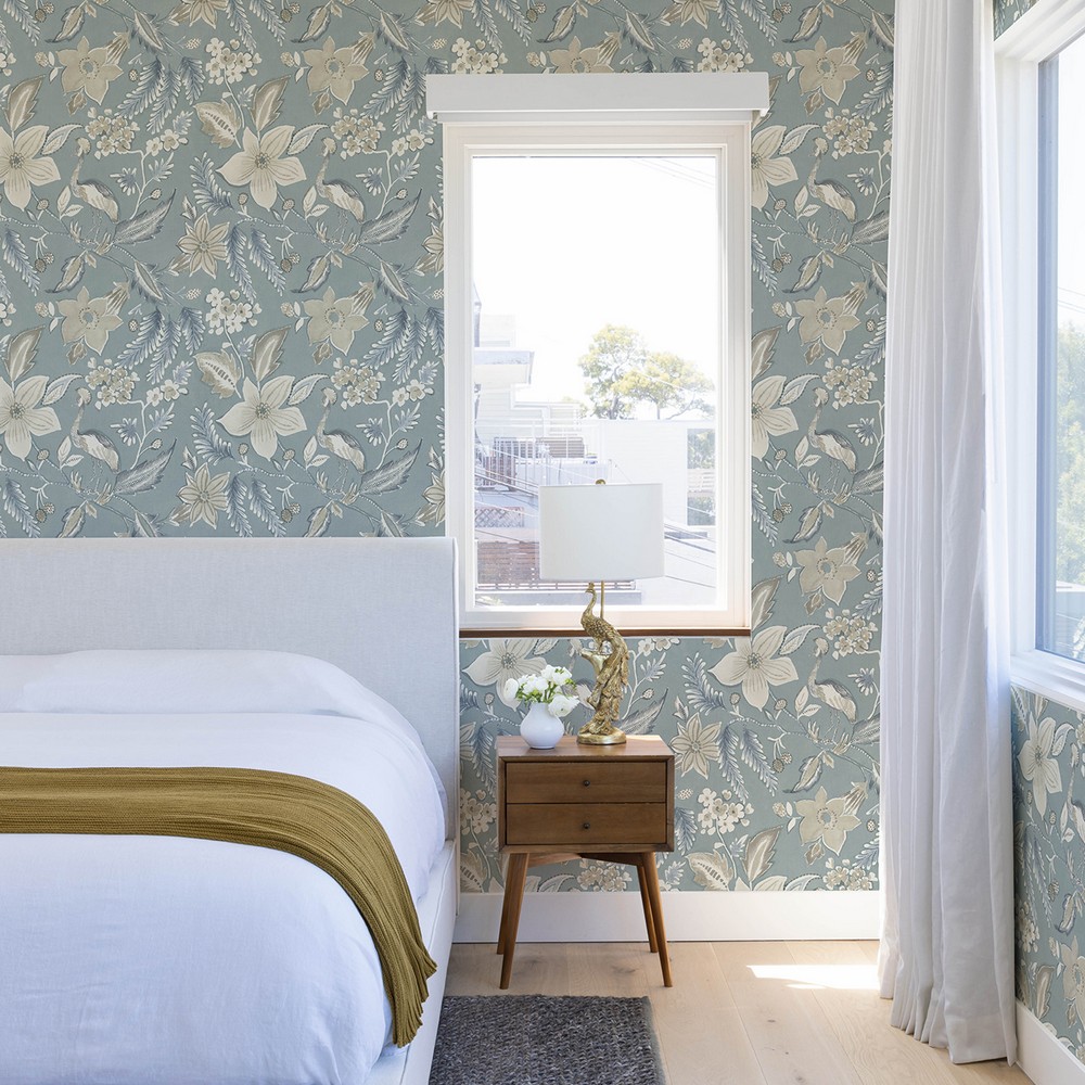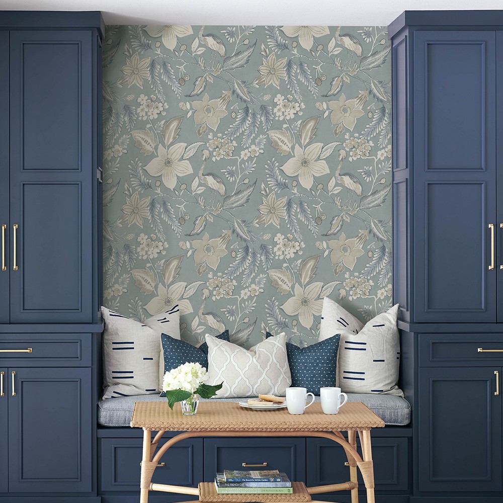 | This floral trail wallpaper offers a current take on chinoiserie charm. The painterly design features luscious floral vines visited by crowned cranes, all detailed in shades of white, grey, and blue. Crestwood is an unpasted, non woven wallpaper measuring 20.5 inches wide by 33 feet long, covering approxiamately About 56.4 square feet square feet per roll A-Street Prints Page: 48 Match: Straight Double Double Roll Width (in): 20.5 Double Double Roll Length in Feet: 33 Unpasted Botanical Color Family: Blues Birds Botanical |