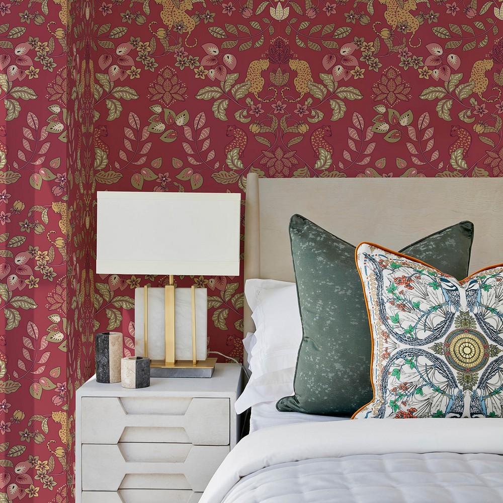 | Bring untamed sophistication to your interiors with this current damask wallpaper. Leopards sit in repose surrounded by luscious floral vines, a color scheme of rich raspberry, pink, and golden yellows adding to its dramatic flair. Getty is an unpasted, non woven wallpaper measuring 27 inches wide by 27 feet long, covering approxiamately About 60.8 square feet square feet per roll A-Street Prints Page: 63 Match: Straight Double Double Roll Width (in): 27 Double Double Roll Length in Feet: 27 Unpasted Animals Color Family: Pinks Animals Animals |