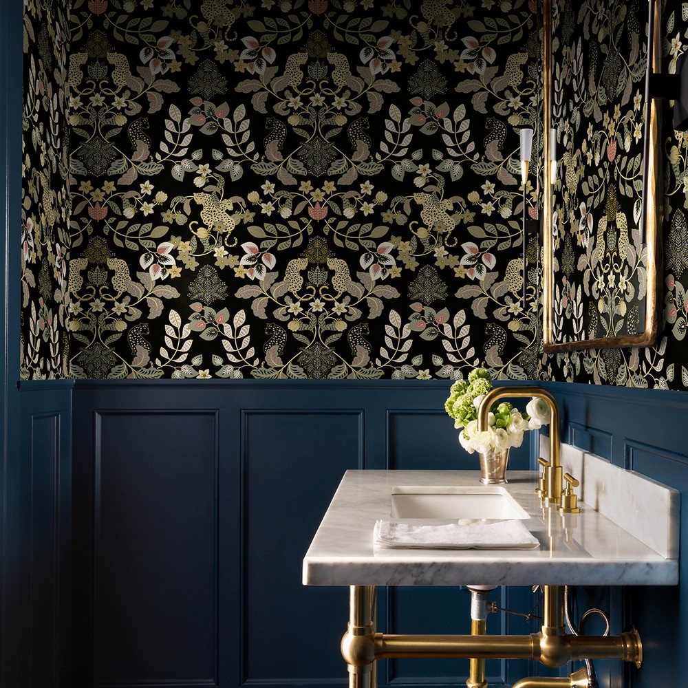 | Enliven your interiors with a rich dose of bohemian glamour. This current damask wallpaper features lounging leopards framed by luscious floral vines, the golden yellow, cream, pink, and sage detailing even more striking against an ink black background. Getty is an unpasted, non woven wallpaper measuring 27 inches wide by 27 feet long, covering approxiamately About 60.8 square feet square feet per roll A-Street Prints Page: 64 Match: Straight Double Double Roll Width (in): 27 Double Double Roll Length in Feet: 27 Unpasted Animals Color Family: Blacks Animals Animals |